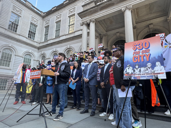 “There are over one million New Yorkers earning $17–a full-time worker making $17 an hour brings home after taxes about $2,000 a month. So, if you break that down, minimum wage workers are surviving on $500 a week. That’s not right. We are in one of the most expensive cities on the planet,” Council Member Sandy Nurse, sponsor of the bill to raise the minimum wage, told the energized crowd.