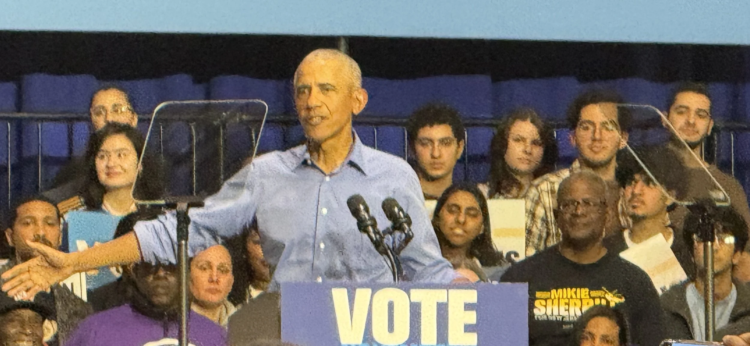 Obama1 Published 4 November, 2025 at 2500 × 1155 in Obama Tells NJ Crowd He Worries About Those ‘Willing to Bend the Knee’ to Trump